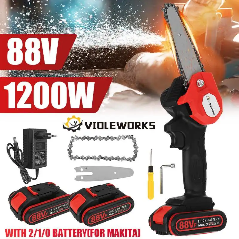 46 дюймов 88VF 1200 Вт Мини электрическая пила для обрезки цепной пилы резак для дерева с перезаряжаемой батареей деревообрабатывающий Одноручный садовый инструмент