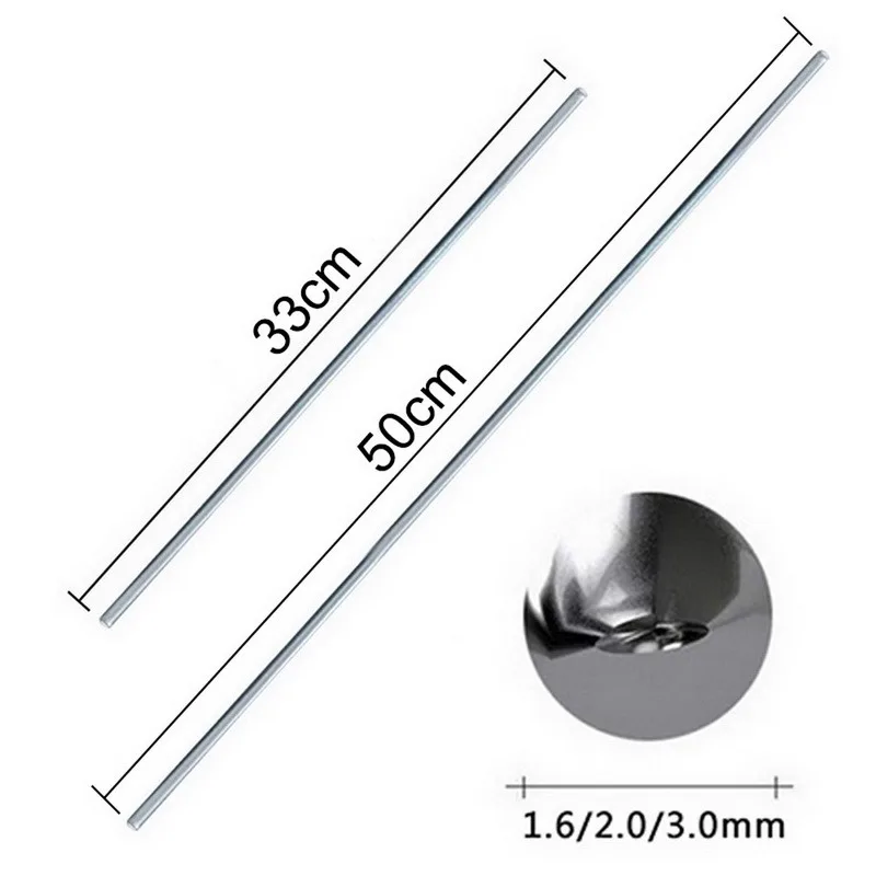 Спецификация продуктаКоличество: 50 шт.Материал: алюминийЦвет: серебристыйРабочая температура: 420 ℃Диаметр: 1,6 мм/0,06"Длина: 330 мм/12,99"