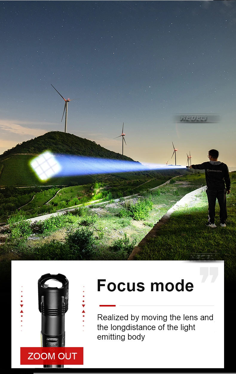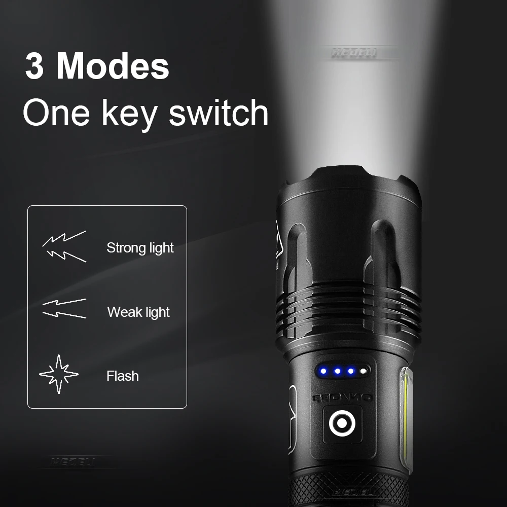Фонарик использует фитиль XHP120 и боковой COB. Это профессиональный высококачественный фонарик, подходит для любителей ночных занятий, которые любят рыбалку и кемпинг. Это также идеальный уличный фонарик для ночного чтения, путешествий на свежем воздухе, приключений и дальних путешествий.COB: сначала Включите режим освещения, а затем дважды щелкните кнопку, чтобы включить режим COB.