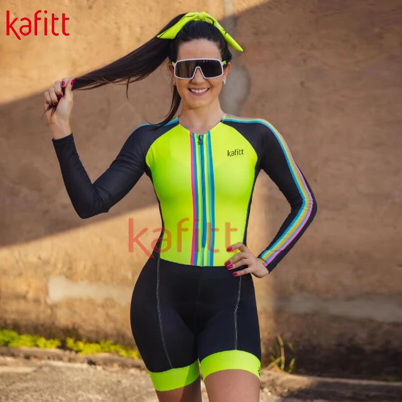 Новый женский триатлонный Трикотажный костюм Kafeet с длинным рукав...