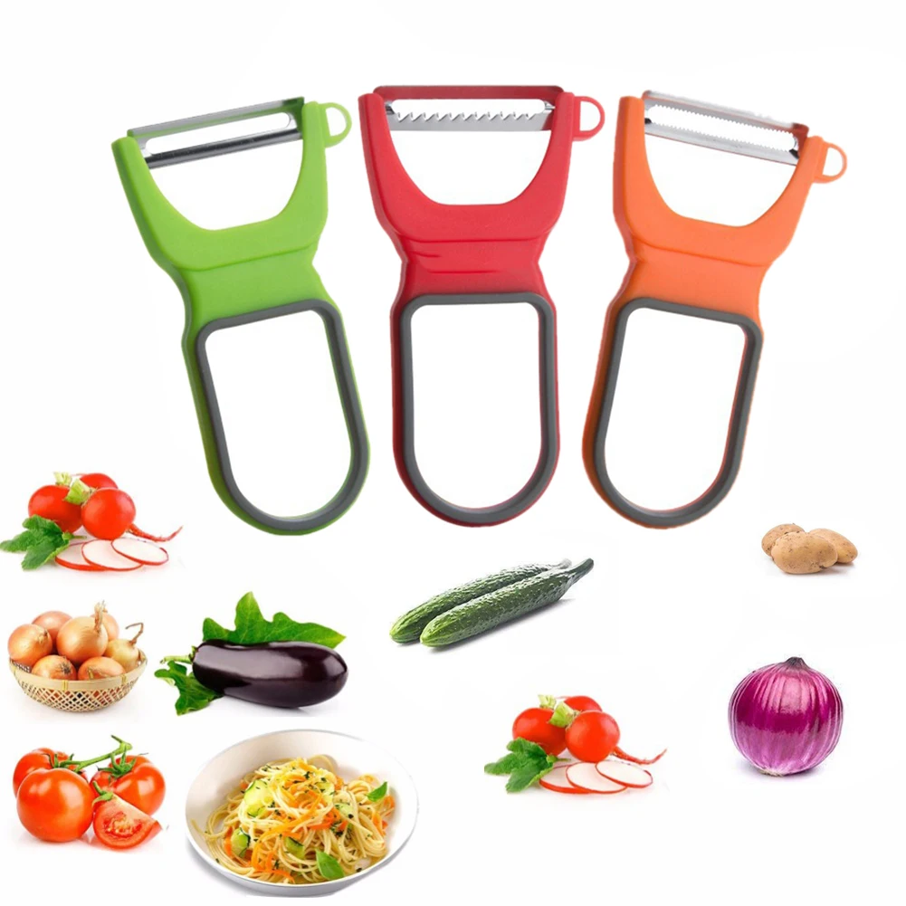 Материал изделия: 304 нержавеющая сталь и АБС-пластикТехнические характеристики: 11,8 × 6,5 × 1,5 смОдин зеленый Овощечистка:Общий пилинг картофеля, моркови, яблок, тыквы, ананасов, помидоров.Один Красный Оранжевый ОвощечисткаИзмельчитель капусты, слайсер для сыра, ленты, тонкая нарезка.И Терка ОвощечисткаЦукини лапша, Тыквенные спагетти.Овощечистка с двойным Ультра острым хирургическим лезвием из нержавеющей сталиДвойные лезвия из нержавеющей стали остаются ультра острыми и поворотными для гладкого, легкого пилингаРучка удобная, даже во время повторяющихся ударов