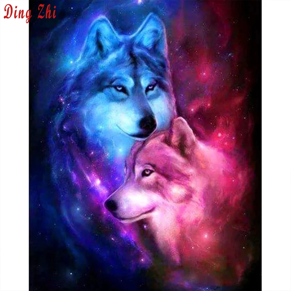Diy Алмазная картина 5D фантазия парные волки Алмазная вышивка полный квадрат/круглый дрель мозаика продажа синий розовый животное картина