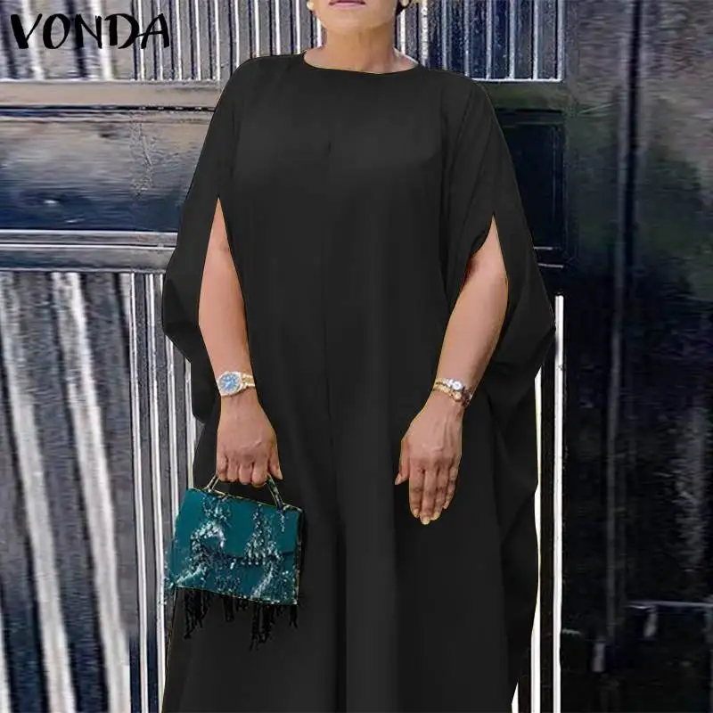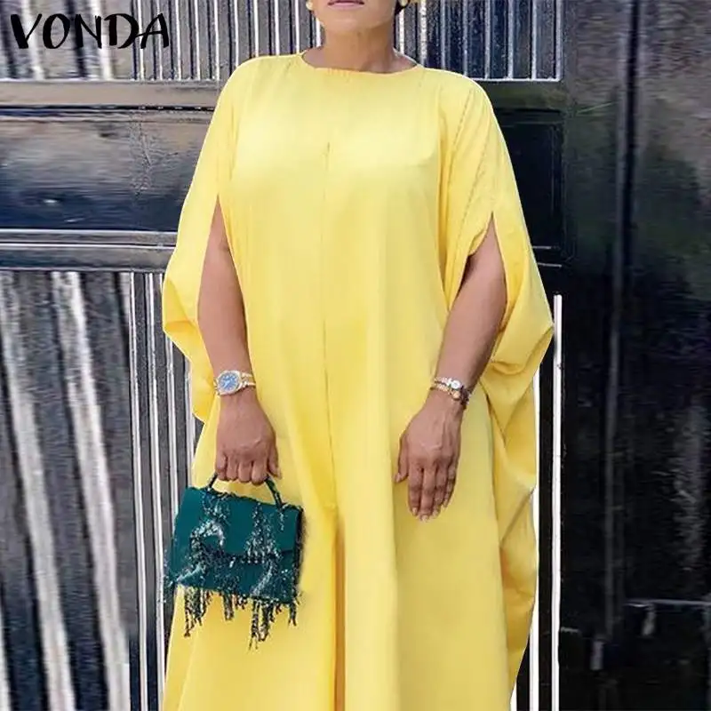 Женское платье VONDA 2022, летние шорты с рукавом, повседневное длинное платье макси с круглым вырезом, богемные платья, пляжный сарафан для женщин