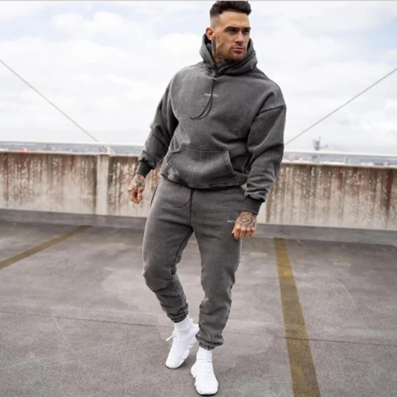Мужской спортивный костюм, хлопковая толстовка с капюшоном и штаны,...