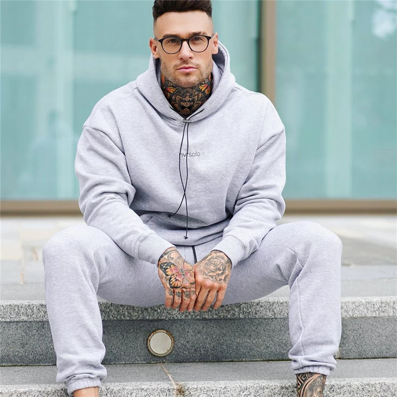 Новинка Осень 2020, спортивный костюм, модная мужская спортивная одежда для бега, комплект из двух предметов, хлопковая толстовка с капюшоном и штаны, спортивный костюм, мужские толстовки