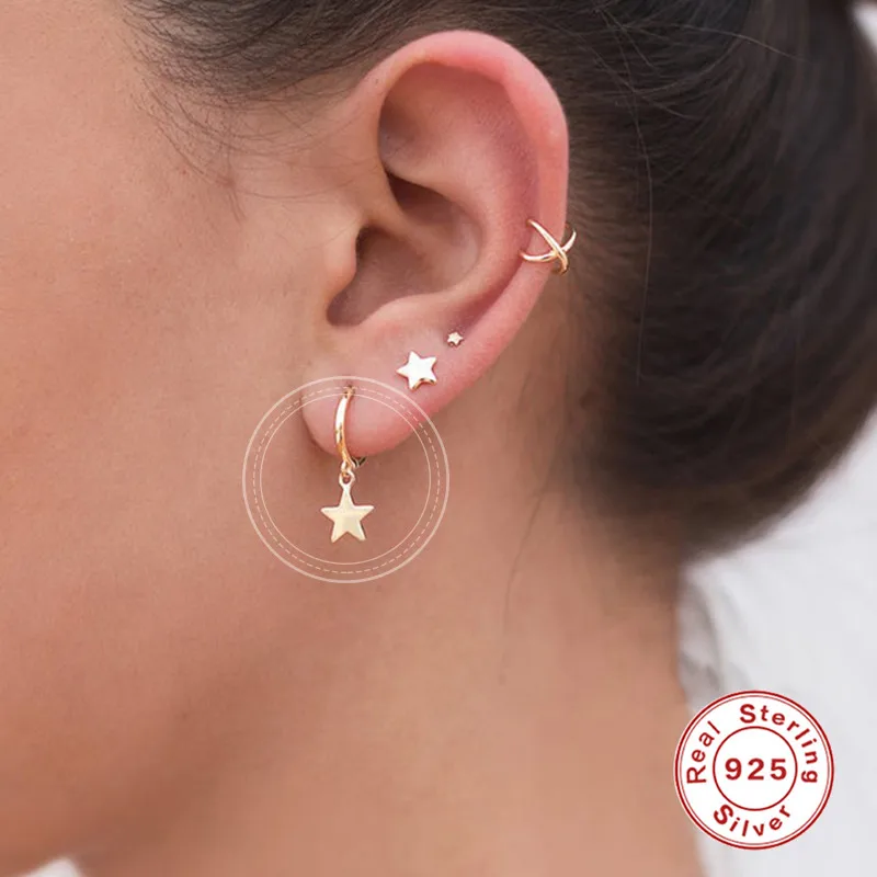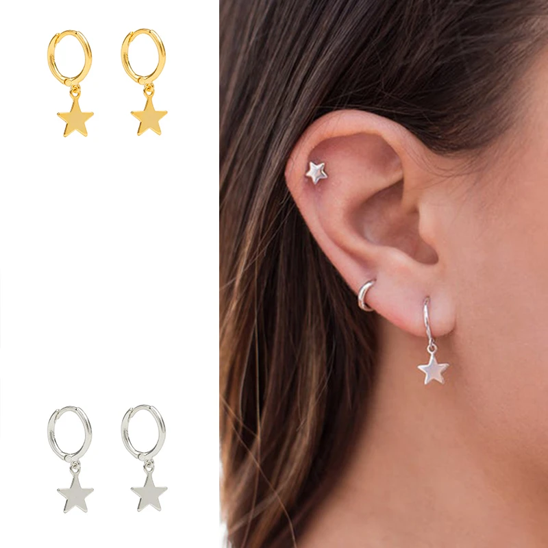 Женские маленькие серьги-кольца BOAKO из стерлингового серебра 925 пробы со звездами кольцо серьги круг пробы, модные украшения для девочек, Pendiente Plata