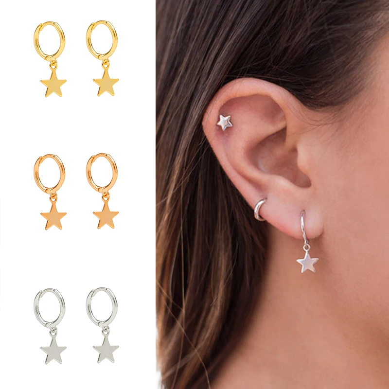Серьги-кольца женские с крестом и звездой, под золото и серебро