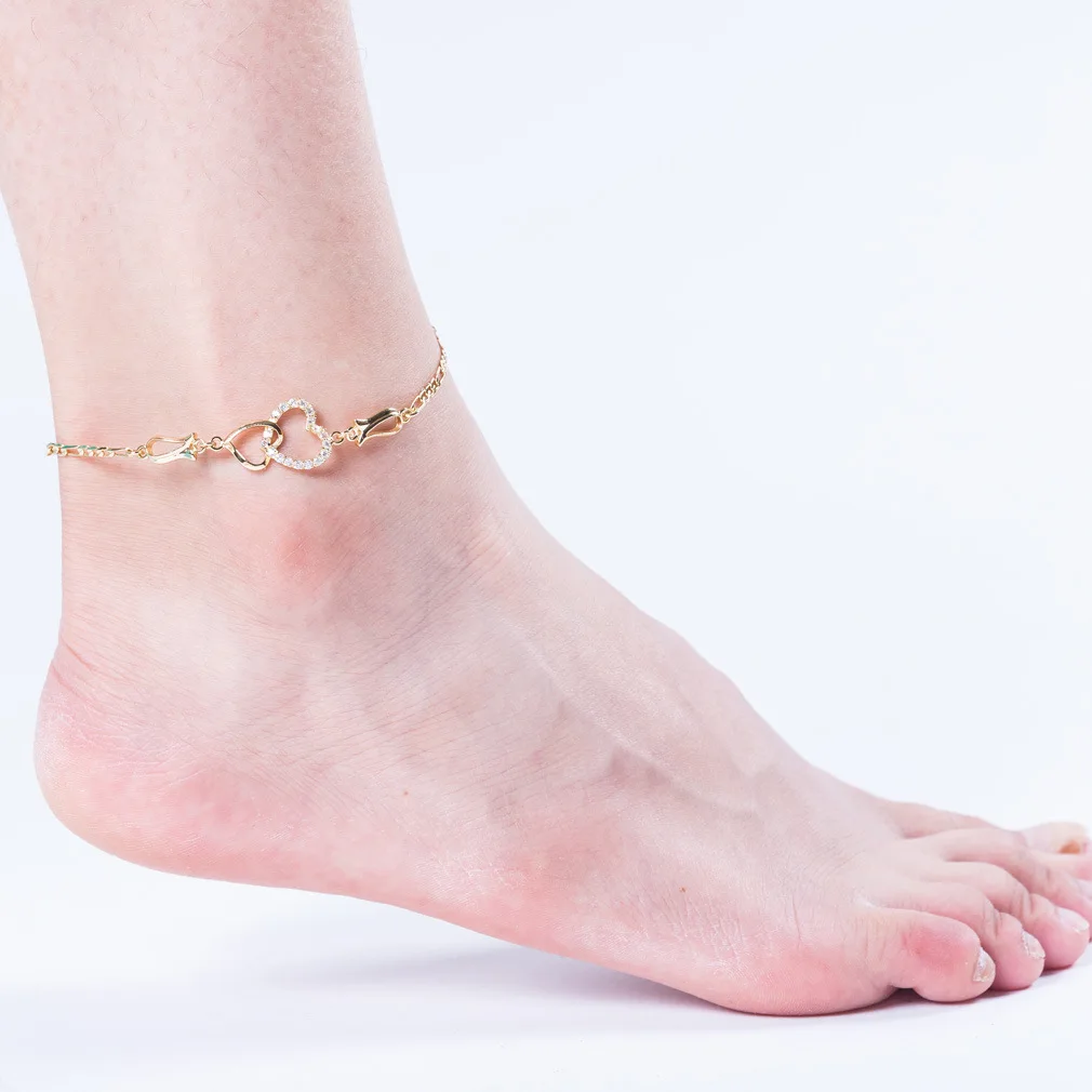 Женские ножные браслеты Shing, золотые сандалии-стразы в форме серд...