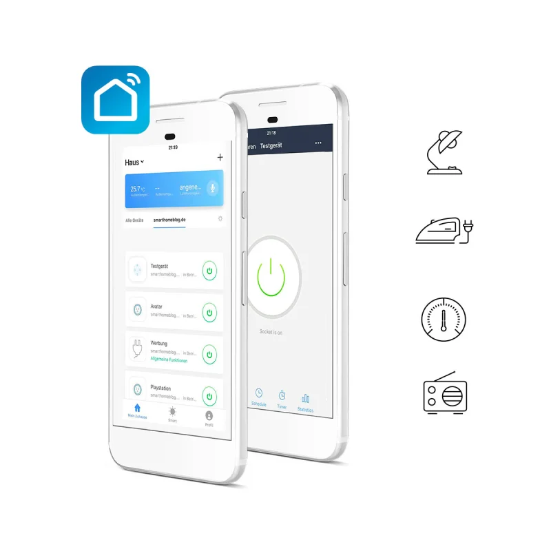Эта умная вилка позволяет Голосовое управление с помощью Alexa/Google. Простая и быстрая работа путем сканирования qr-кода для загрузки приложения (app Store /Google play Store)