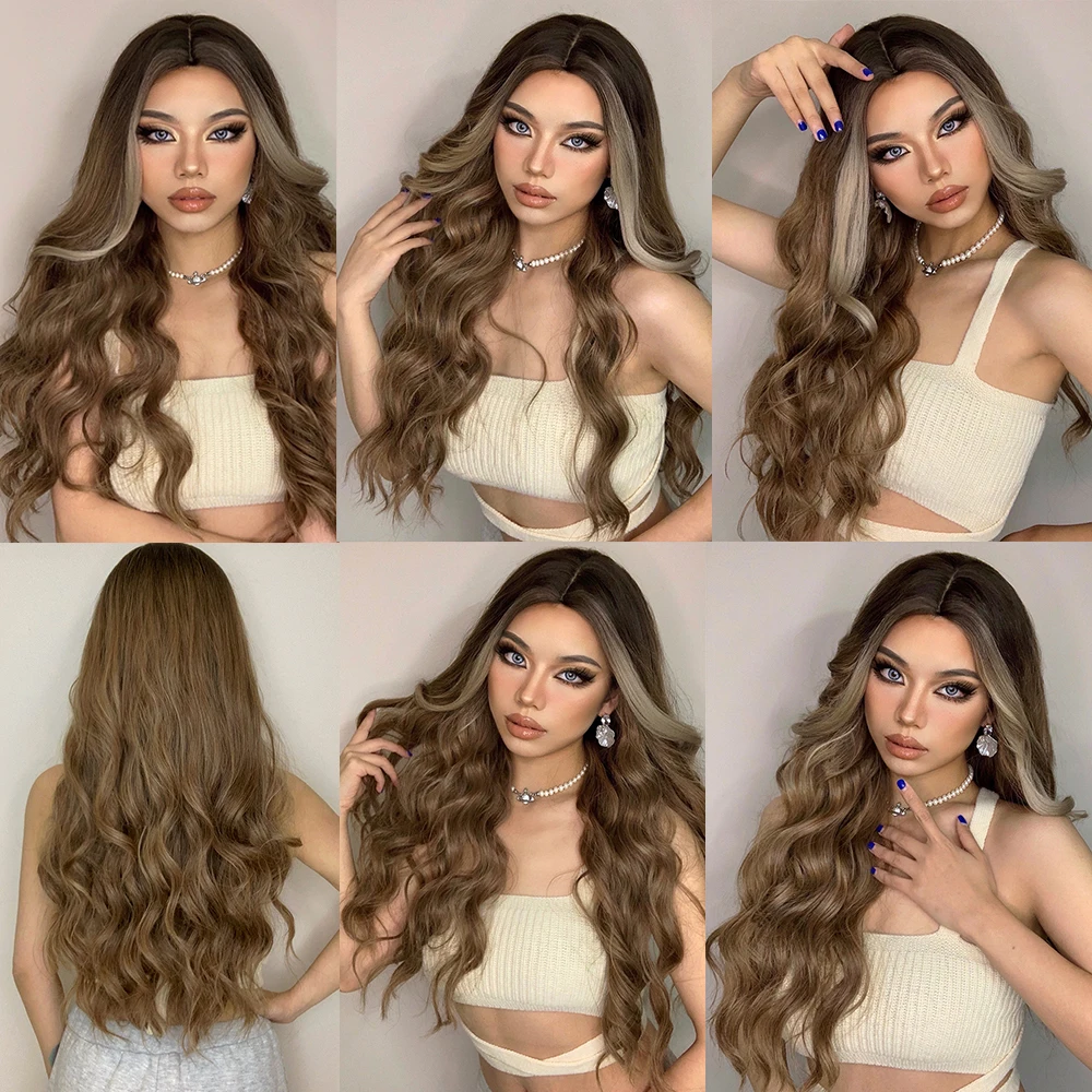 Длинные волнистые синтетические парики henmargu, смешанные коричнев...