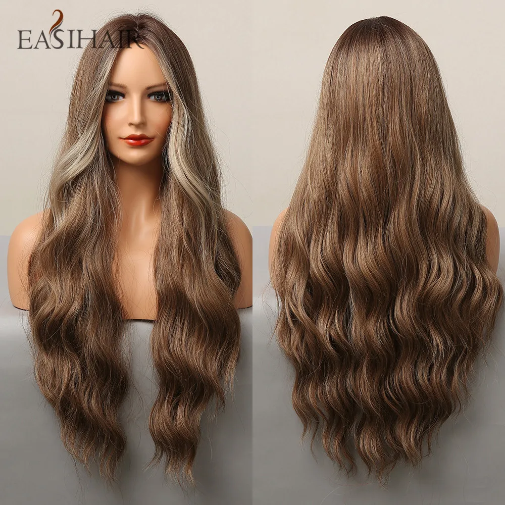 EASIHAIR длинный коричневый Омбре синтетический парик объемная волна натуральные волосы парики для женщин волнистые милые Косплей парик термостойкие