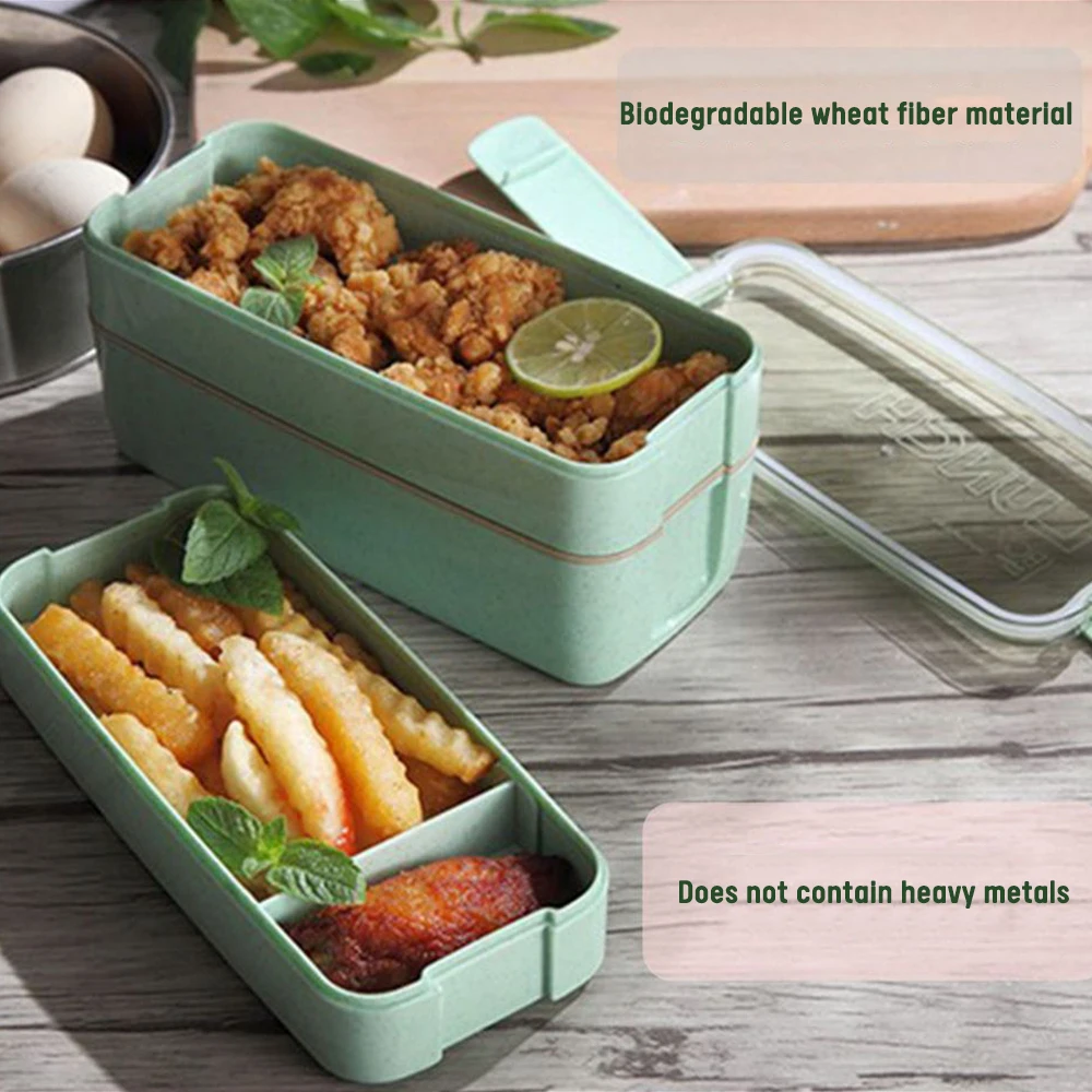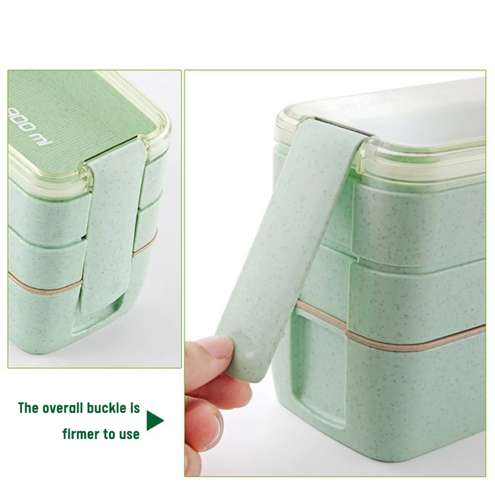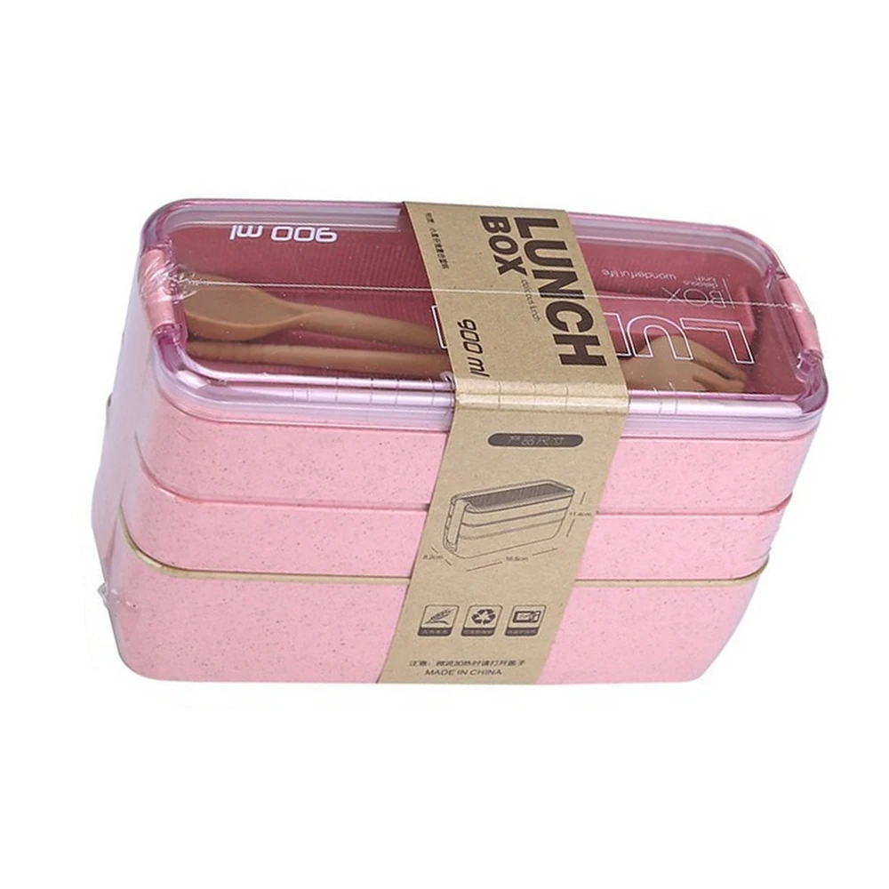 Ланч-бокс из пшеничной соломы, пластиковое волокно, квадратная трехслойная Студенческая коробка для завтрака, Ланч-бокс с столовыми принадлежностями, контейнеры для хранения еды, кухонные инструменты