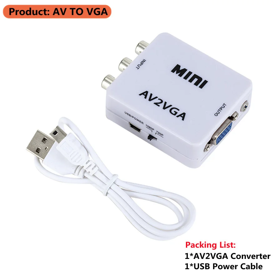 Мини-видеоконвертер 1080P RCA AV на VGA, видеопреобразователь с 3,5 мм аудио AV2VGA CVBS + преобразователь Аудио на ПК HDTV