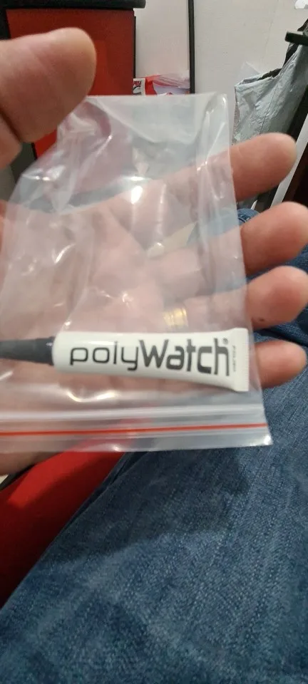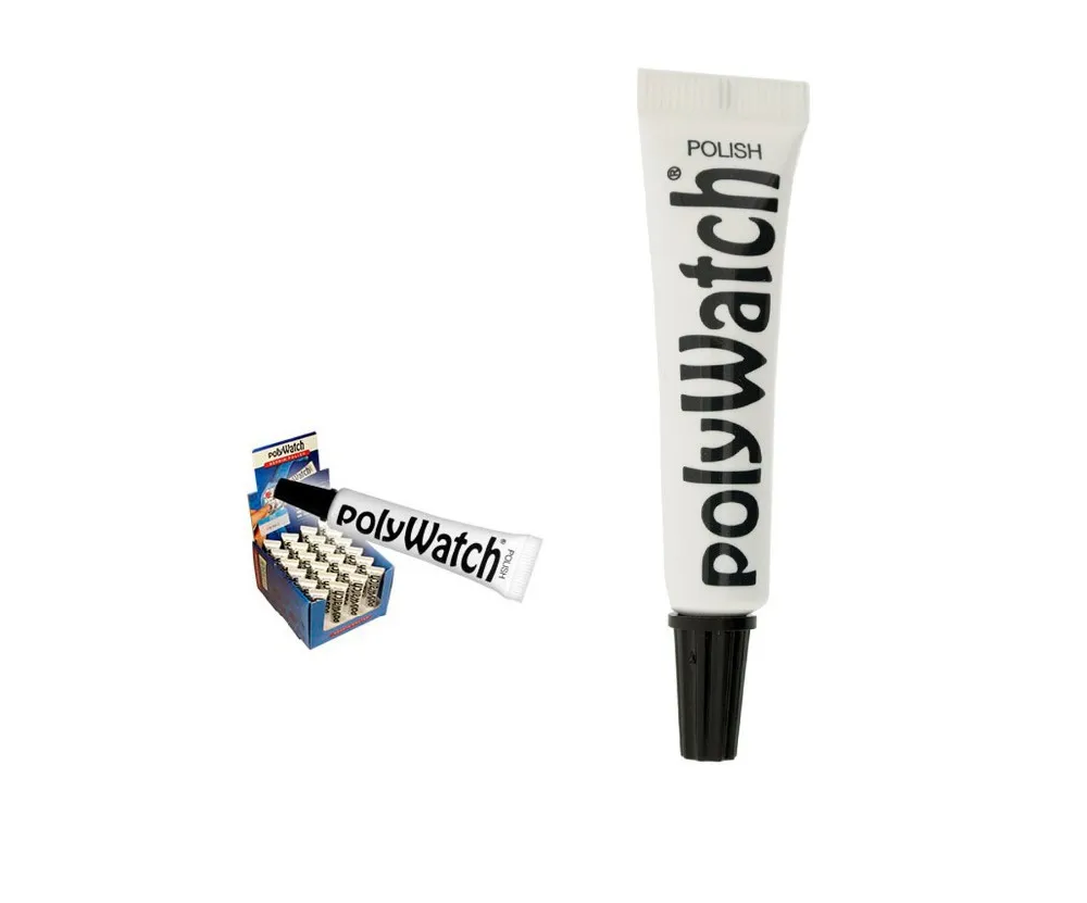 Поличасы царапины REMOVALPlastic/акриловые часы Кристаллы очки часы РемонтОписание товараКрем для удаления царапин для акриловых или пластиковых кристаллов/очков.Polywatch слегка растворяет и изнашивает поверхность пластикового/акрилового стекла часов, это затем разглаживает края царапин и заполняет зазоры растворенным материалом.* 100% новый бренд* N.W. 5g* Применение:Нанесите поличасы на Пластиковый Кристалл часов. Полируйте поцарапанные области в течение 2-3 минут под давлением, используя кусок хлопковой шерсти. Глубокие царапины должны протекать не один раз.Для образцов и других часов с пластиковым стеклом.Упаковка включает в себя:1 трубка x 5g поличасы