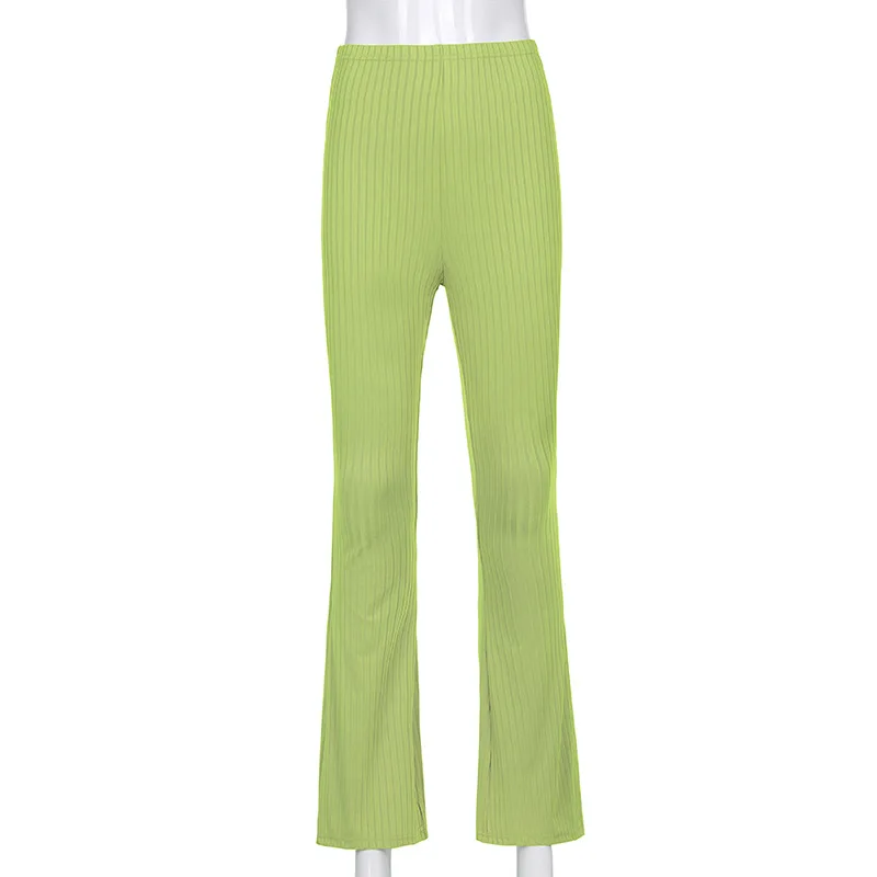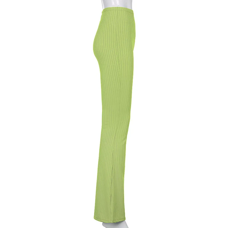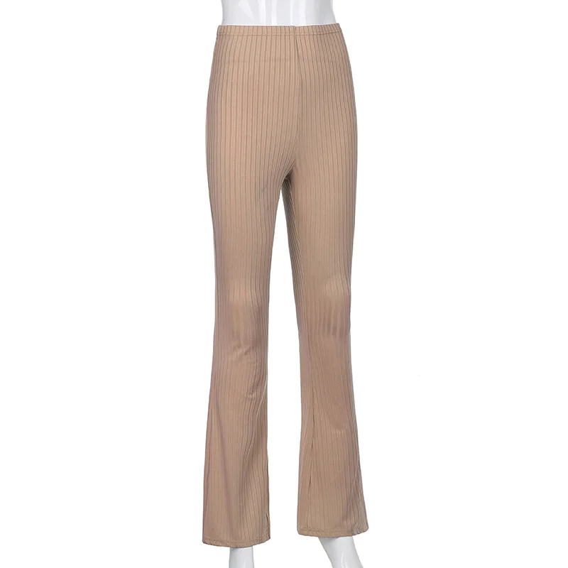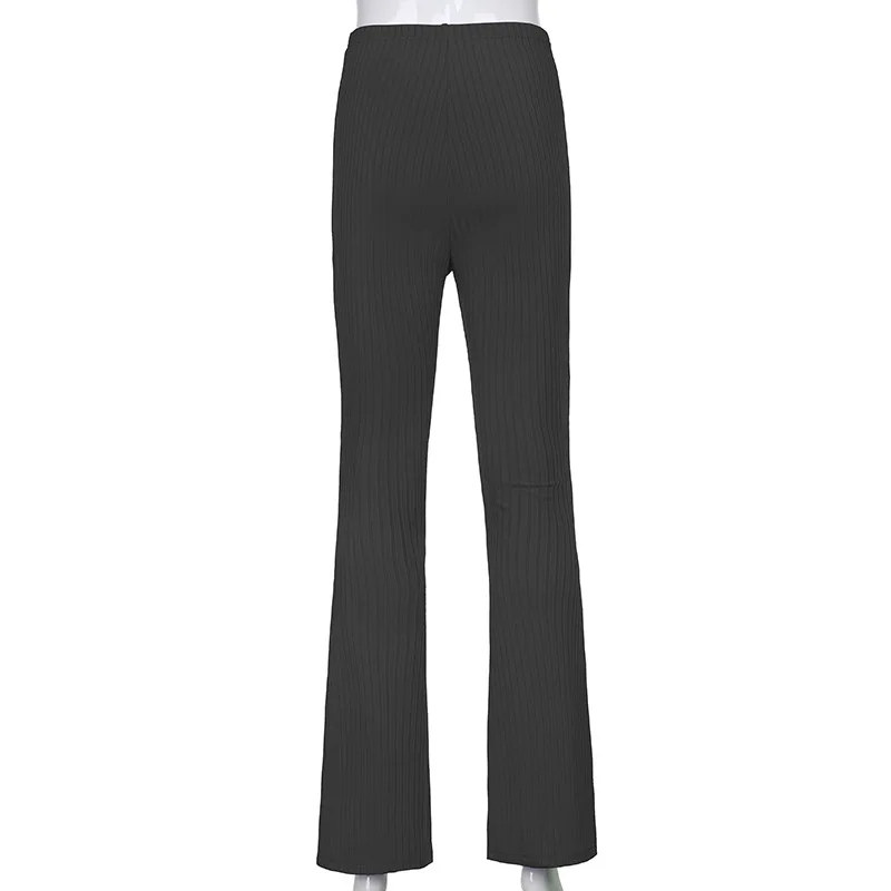 Y2K эстетическое ребристые вязаные брюки для женщин тонкий с высоко...