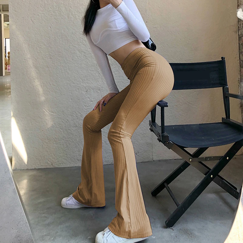 Ребристые трикотажные повседневные расклешенные брюки для бега Женс...