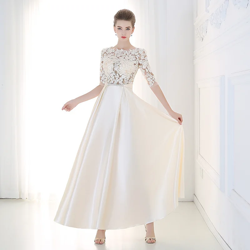 CloverBridal в наличии robe de soirée de mariage 2021 кружево + Атлас Длинные без рукавов Женские Элегантные платья для вечеринки DH9510