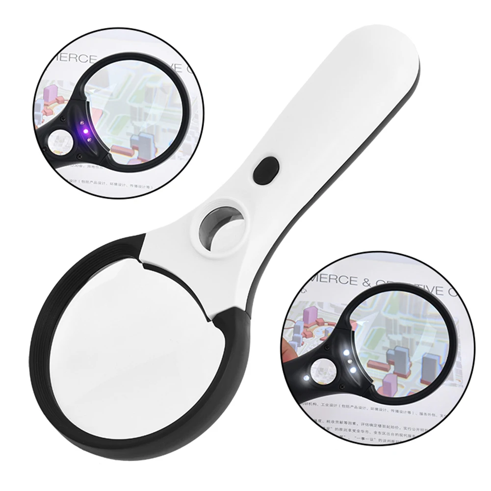 Лупа 3x45x с подсветкой, увеличительное стекло для чтения банкнот, ...