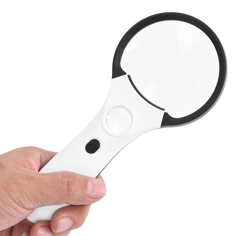 Увеличительное стекло 3x45x HD с 4 светодиодными лампами, ручное ув...