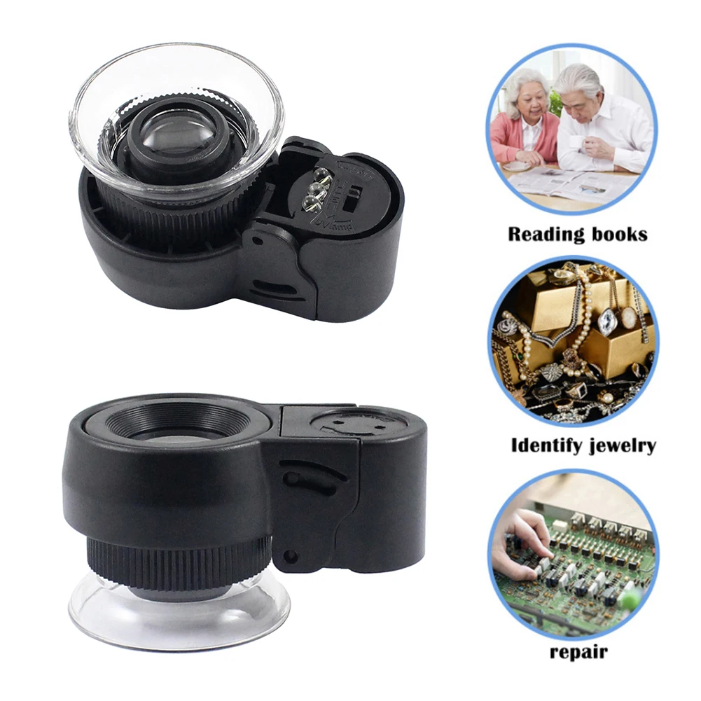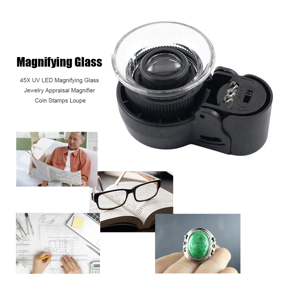 Увеличительное стекло, портативное, легкое, 45X УФ светодиодный, оп...