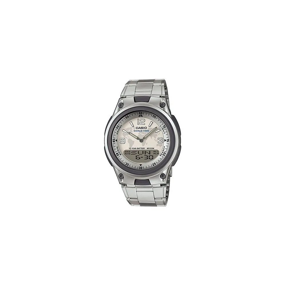 Бренд: Casio Пол: мужские Тип: кварцевые Коллекция: Collection Вариант артикула: AW-80D-7AER Цифры: арабские Водозащита: WR 50 Материал браслета: стальной Материал корпуса: пластик Размер: 46,8x40мм, толщина 13,5мм, вес 85г Отображение даты: число Подсветка: иллюминатор, послесвечение Способ отображения времени: аналоговый + цифровой Стекло: пластиковое Дополнительные функции: будильник (количество установок: 3)
