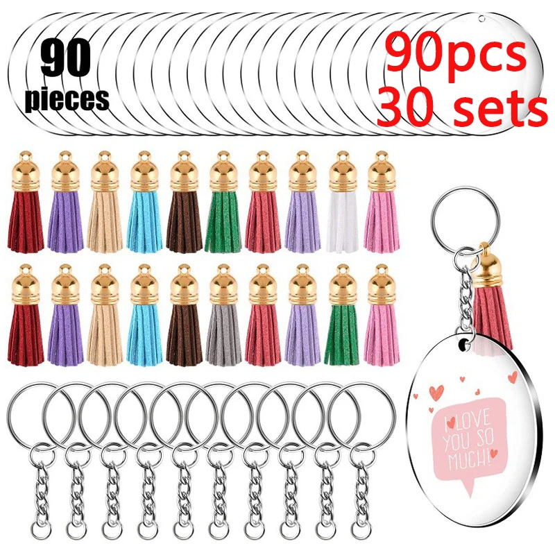 Акриловые заготовки для брелоков, прозрачные брелоки, включая акриловые заготовки, кисточки для брелоков, кольца для брелоков для рукоделия, изготовление брелоков