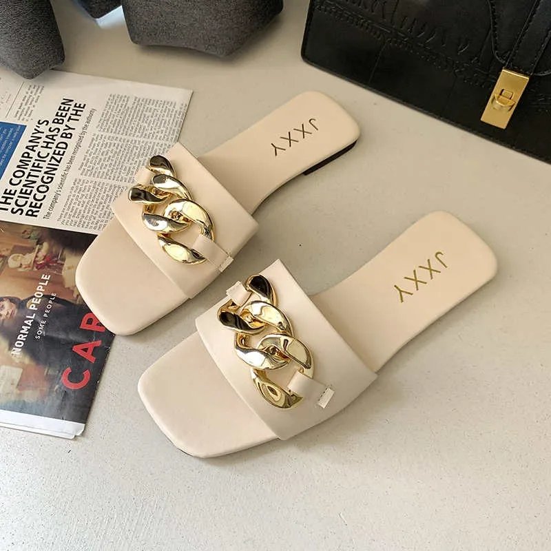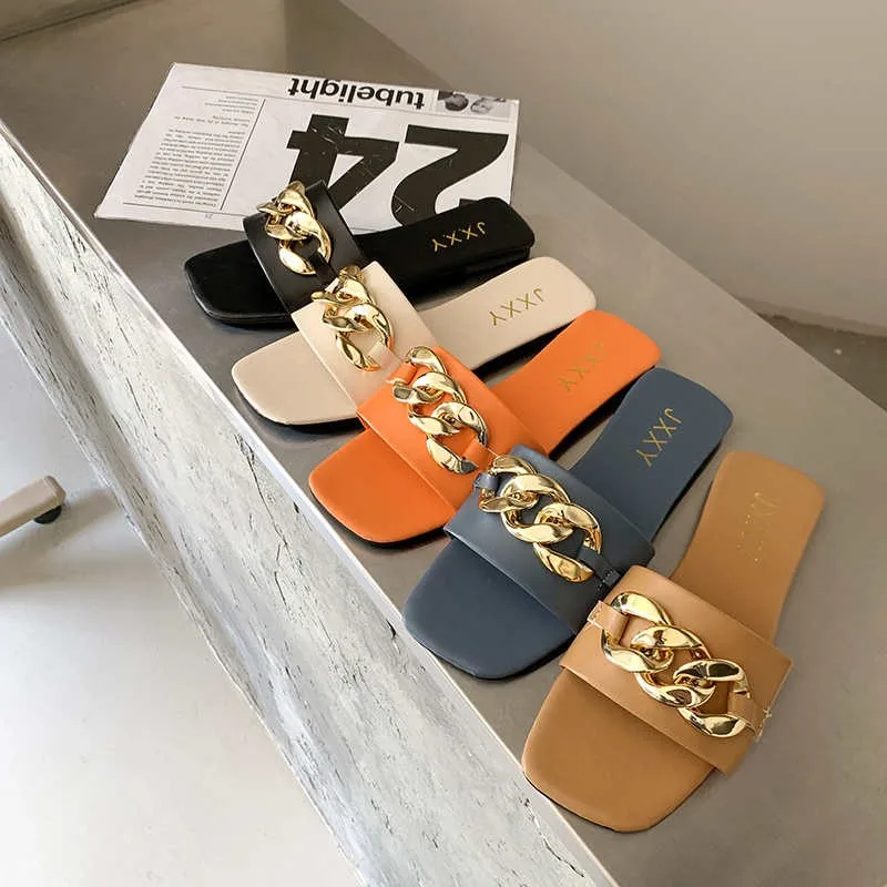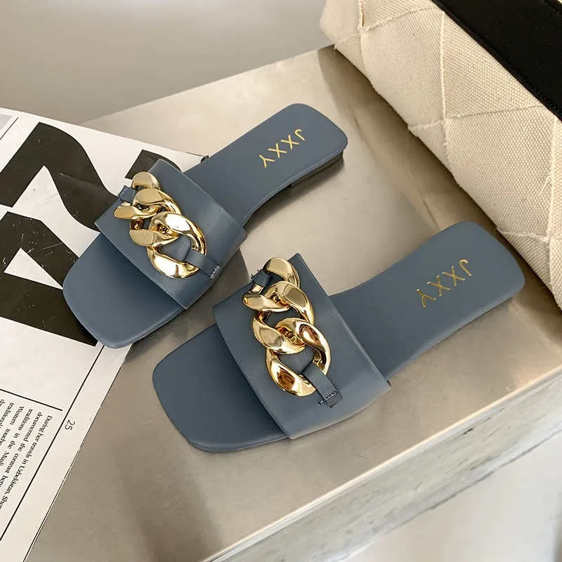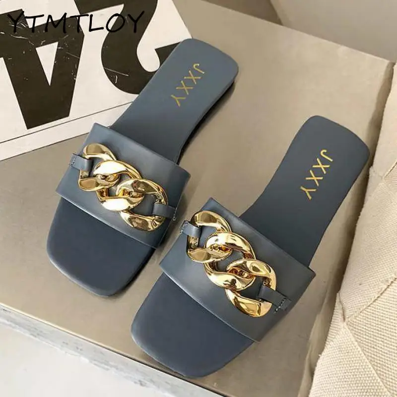 Женские блестящие мюли на металлической цепочке, летние модные повс...