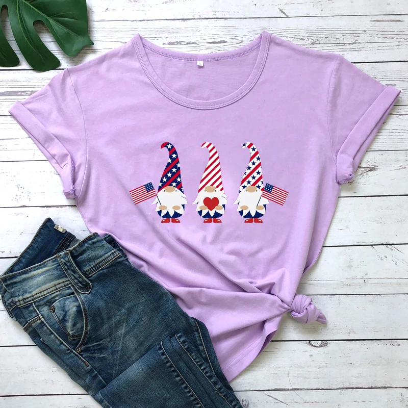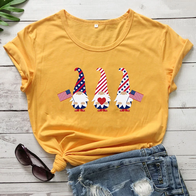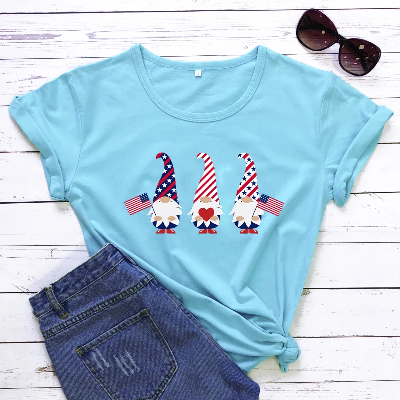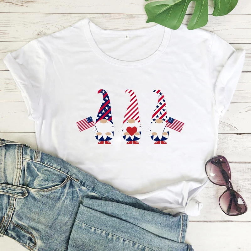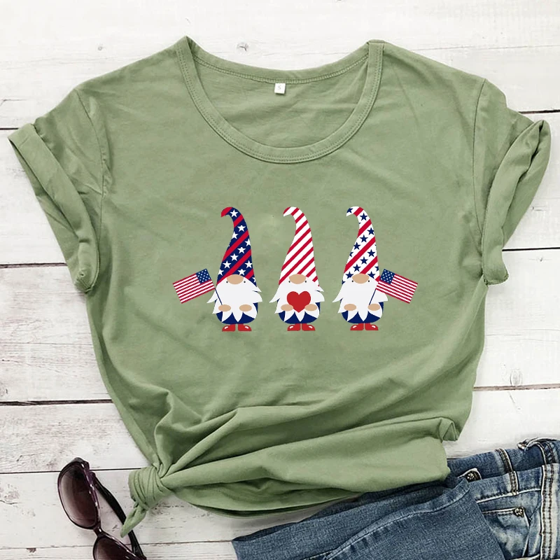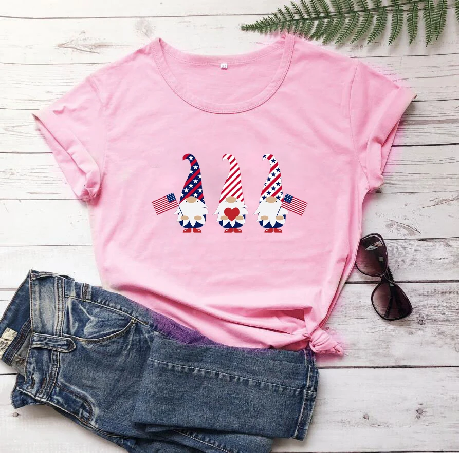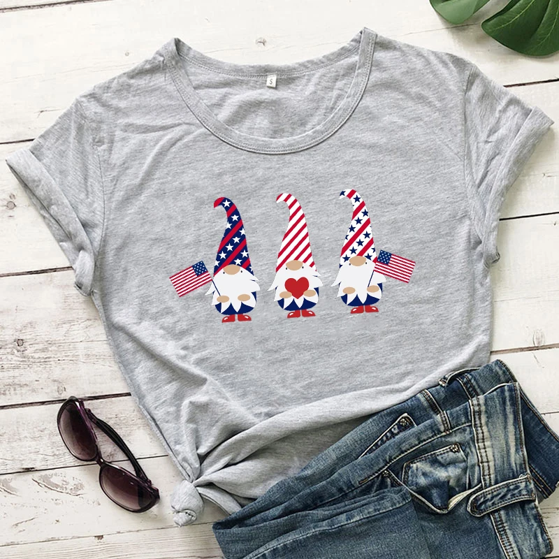 Женская футболка с американским флагом гномиков, рубашка на День независимости в стиле Харадзюку, женская модная Винтажная футболка в стиле гранж, футболка