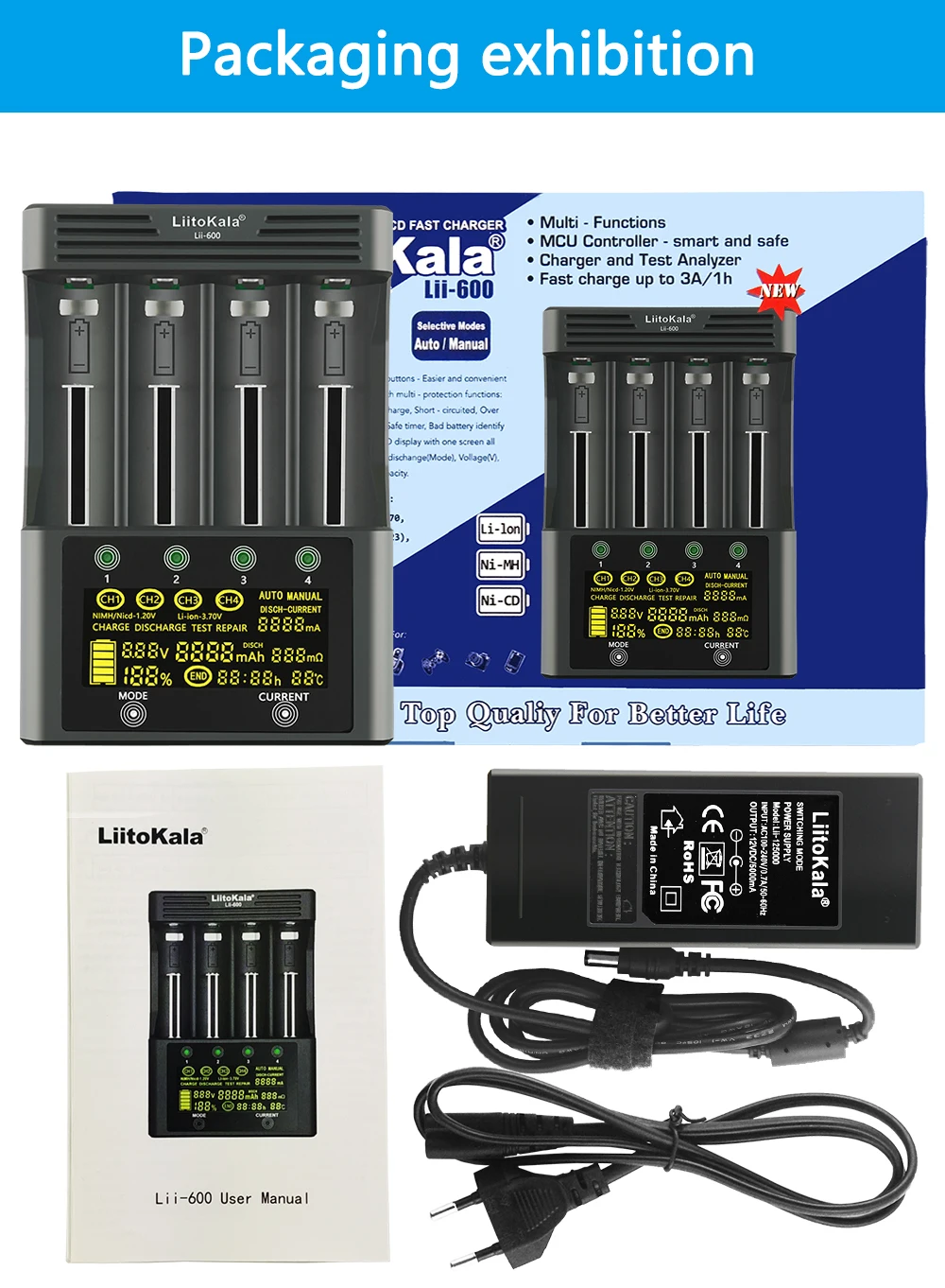Спасибо, что использовали наши продукты smart charger-Lii - 600, это высококлассное умное быстрое зарядное устройство, управление сенсорным экраном/4 канала независимый перезаряжаемый аккумулятор емкостью тестирования/прибор для измерения температуры/Защита от короткого замыкания, защита от избыточного заряда защита и ноль вольт батарея Функция активации, И может автоматически контролировать заряд батареи, разрядку и процесс тестирования.