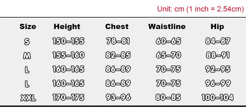 Примечание: костюм азиатского размера и может быть меньше, чем европейский или американский размер. Пожалуйста, следуйте таблице размеров. Не выбирайте напрямую. Согласно вашим привычкам.