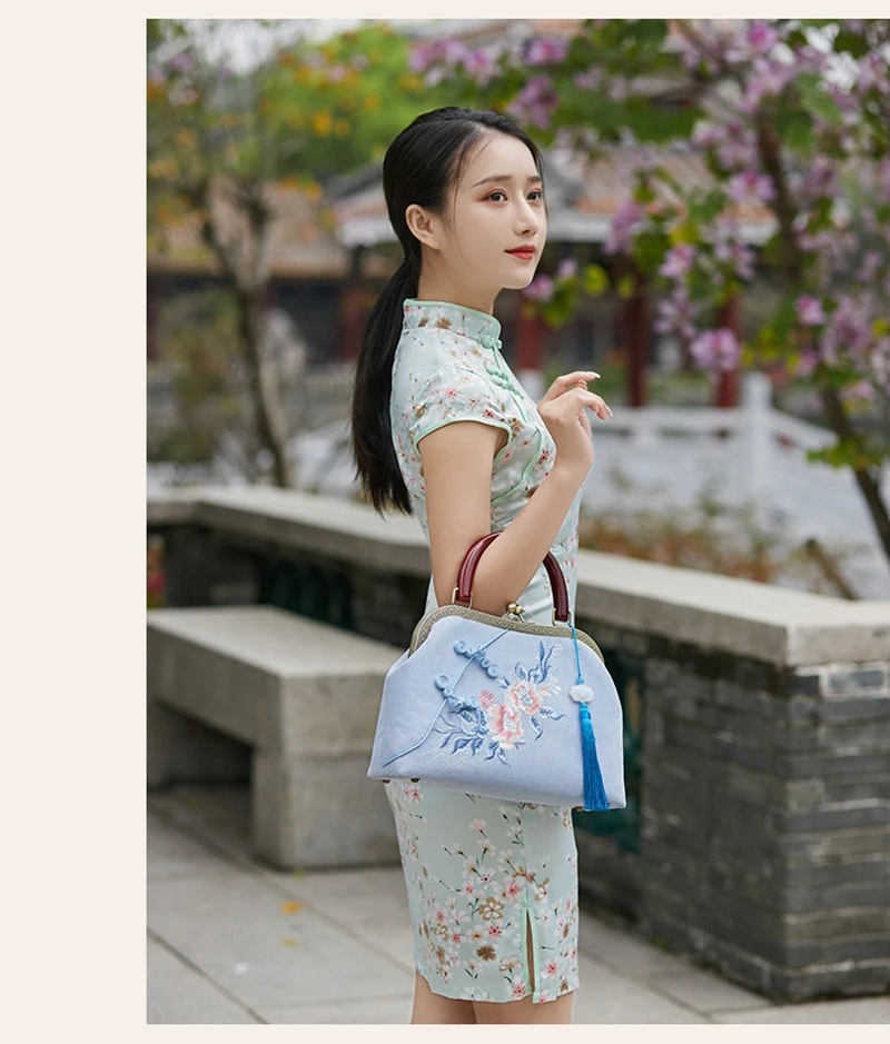 Вышивка Шикарная Леди Винтаж сумка сумки с бахромой с Блокирующей дерева ручной Для женщин сумка через плечо сумки 2021 Новый Для женщин Сумки