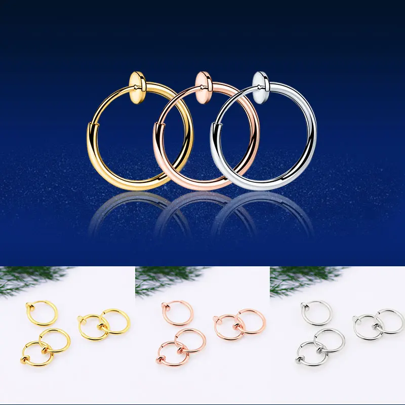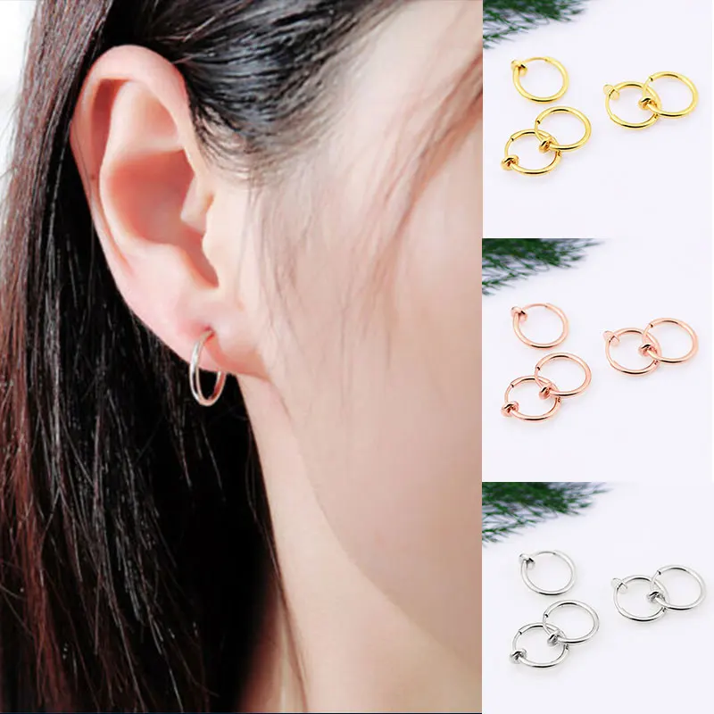 5 шт. 11/13/15 мм Для женщин мужчин круг серьги кольца для зажимов в стиле «панк» не проколотых серьги в виде колец, весна гот изделие псевдо зажим на круглые серьги