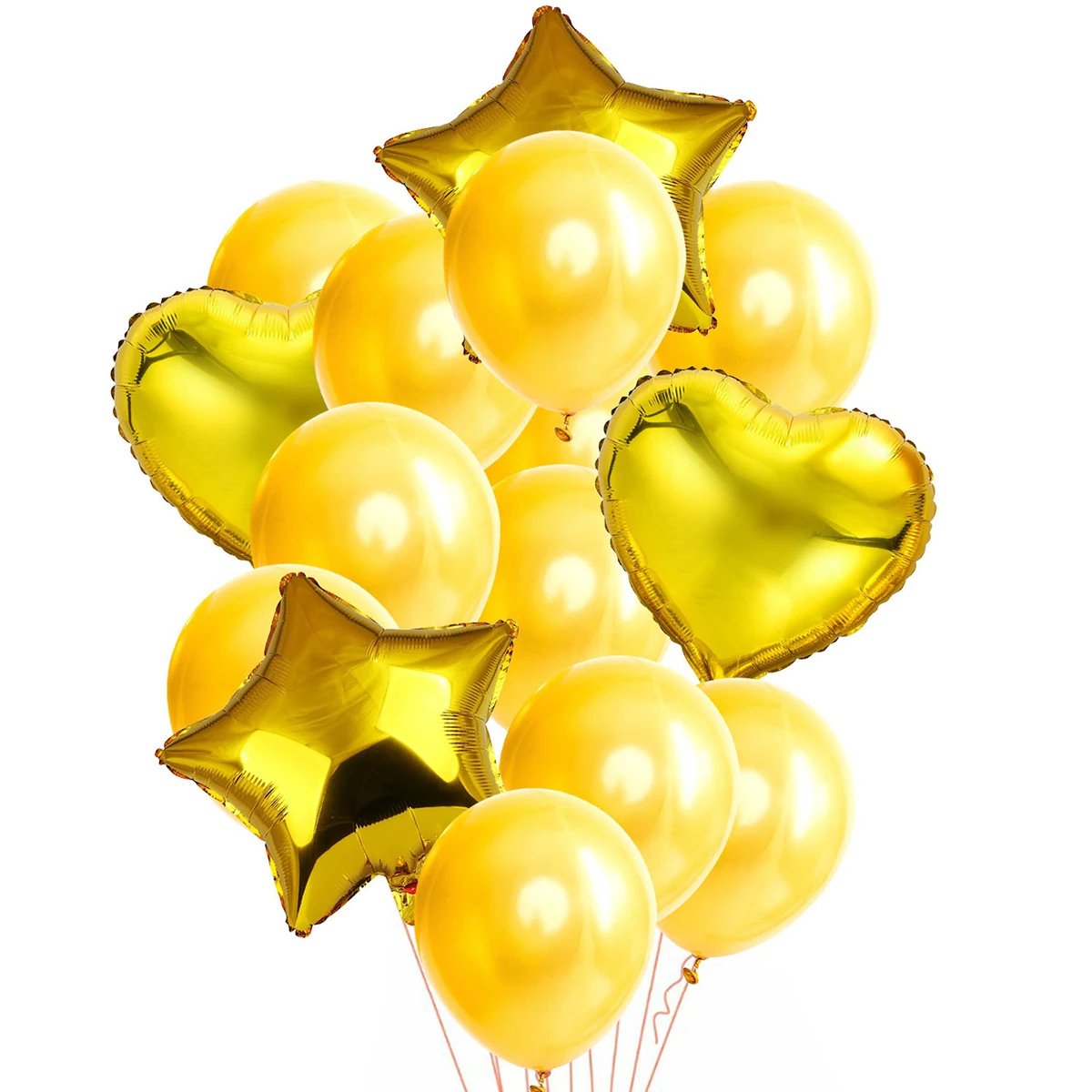 Шары воздушные золотые металлические шары в форме сердца, звезды, в...
