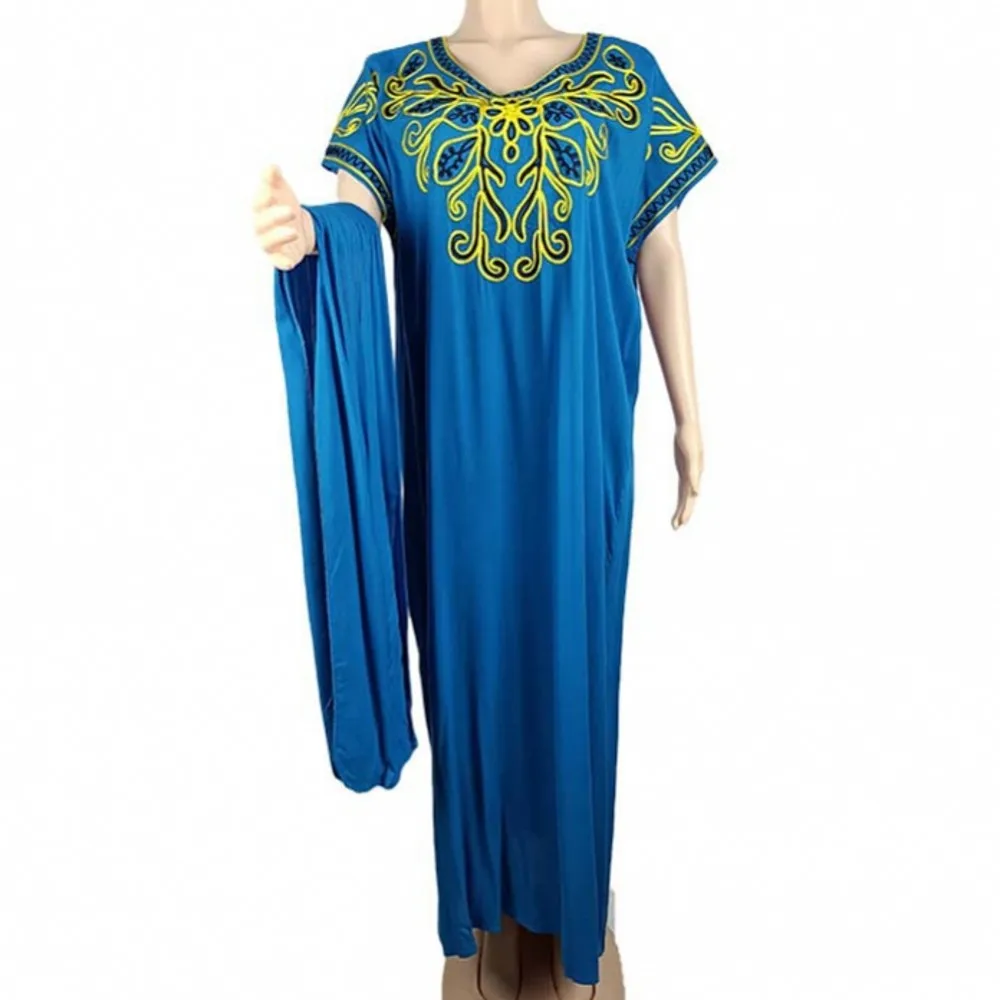 Африканской ажурной вышивкой дизайн Винтаж короткий рукав халат платья мусульманский свободные женские вечерние Дашики Платье Абаи Дубай Макси Базен и шарф