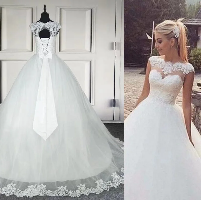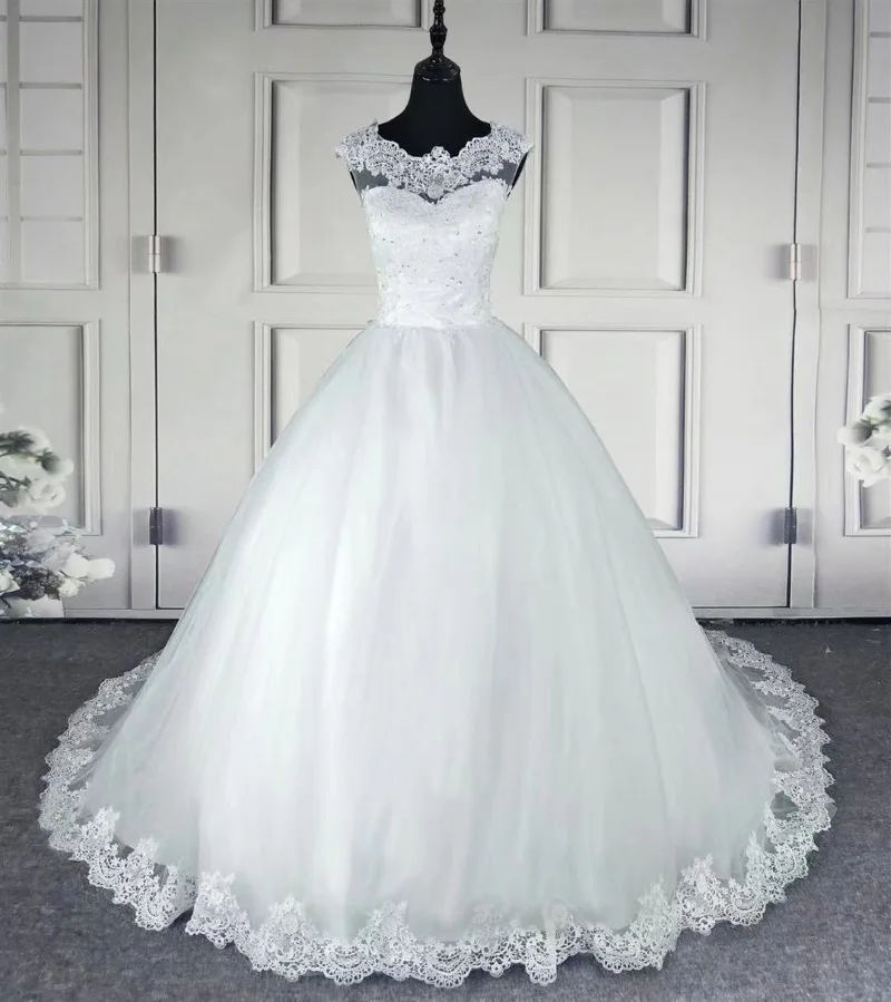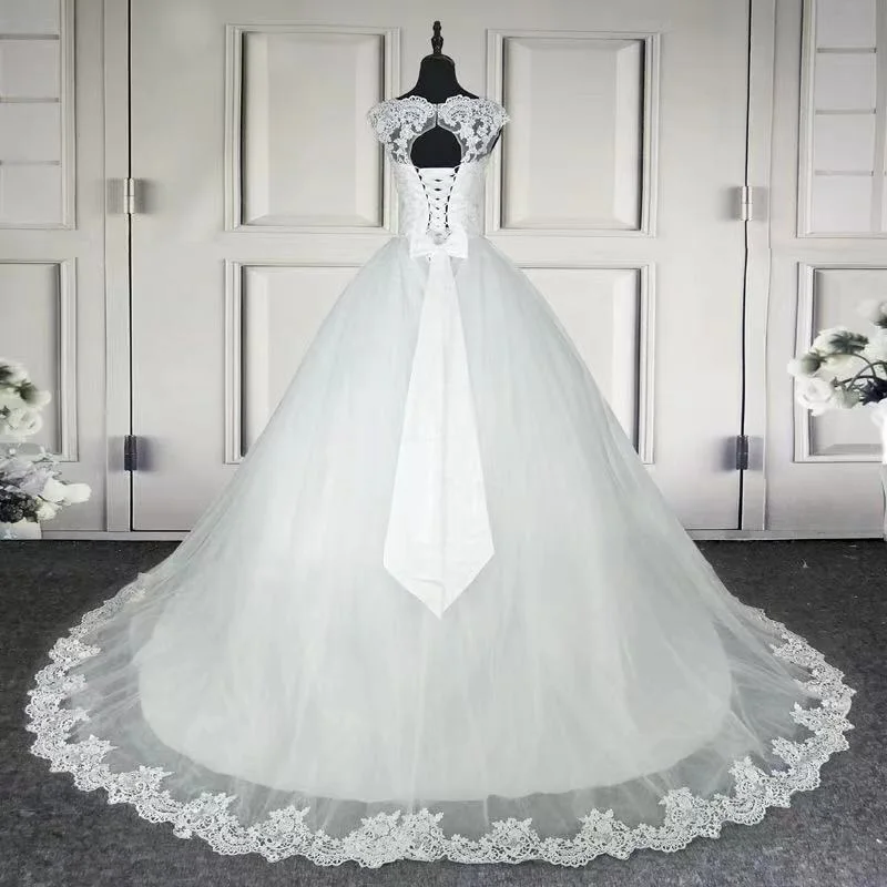 Женское свадебное платье It's yiiya, белое кружевное платье трапециевидной формы со шлейфом и круглым вырезом на лето 2021