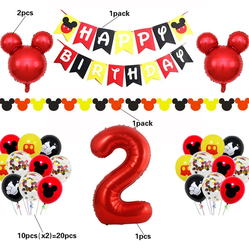 Микки Маус вечерние шар тема детский день рождения торт баннер набор воздушных шариков с Микки и Минни; Одежда для дня рождения, вечерние Декор поставки