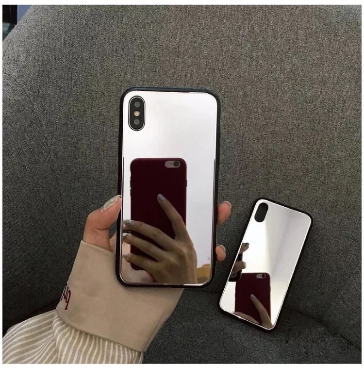 Серебристый зеркальный чехол для макияжа для iPhone X XS Max XR, тв...