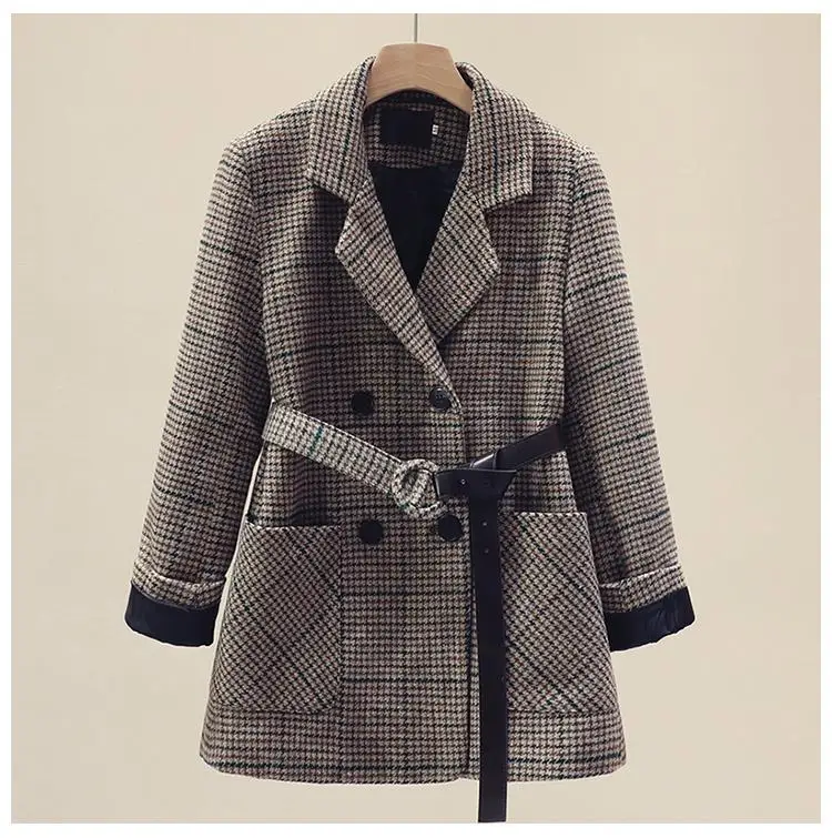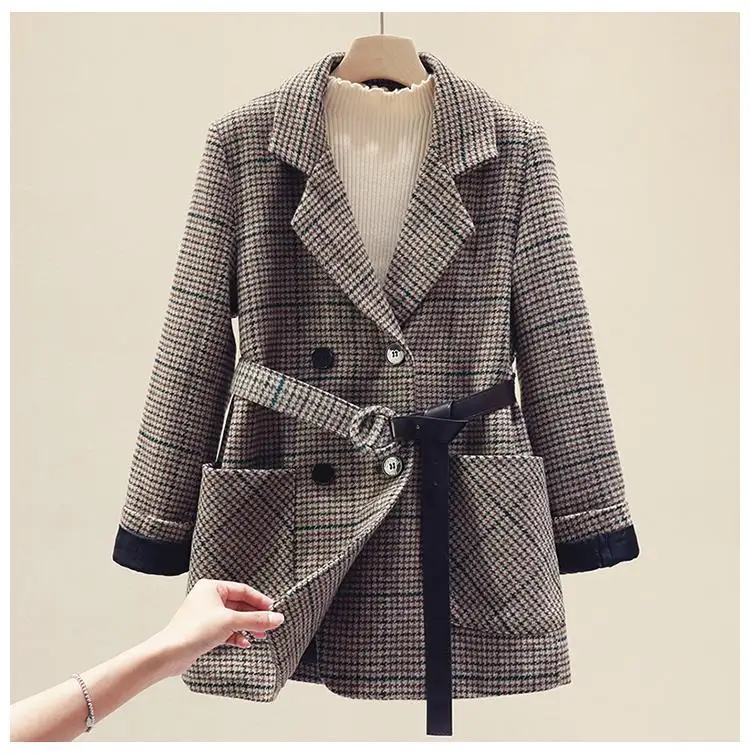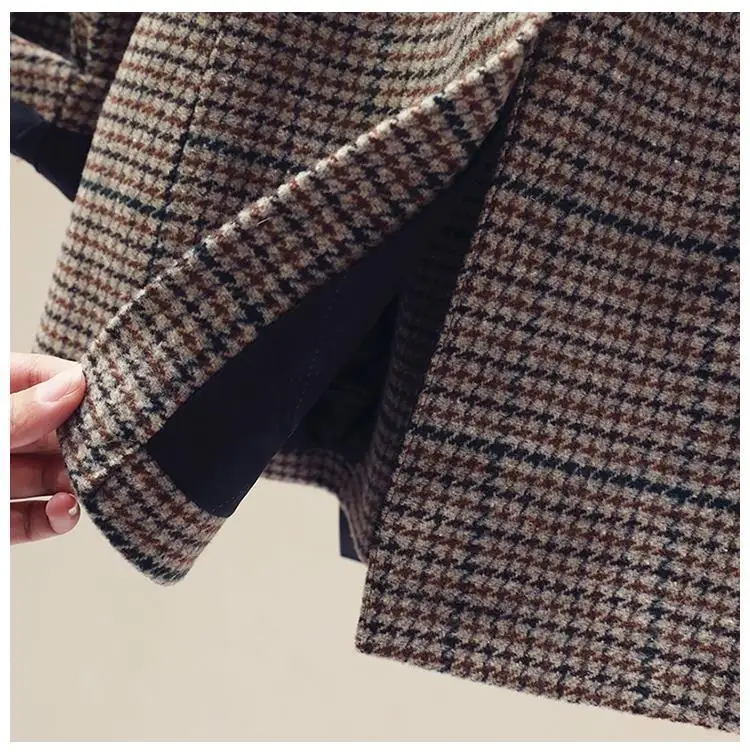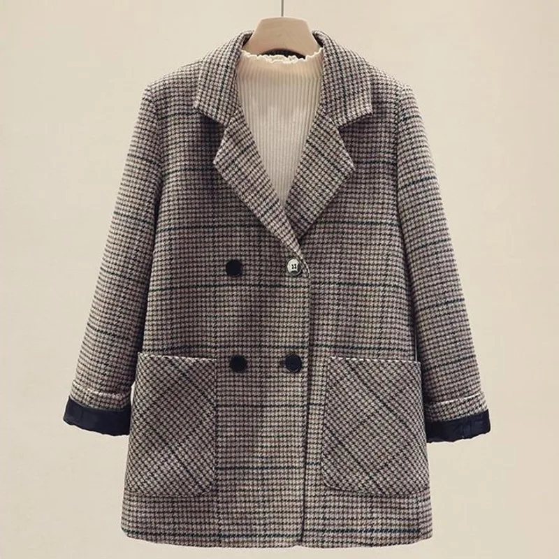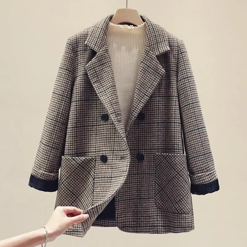 Клетчатое пальто, шерстяная одежда, женская теплая куртка, Женская Осенняя Повседневная зимняя женская блузка, верхняя одежда, пальто