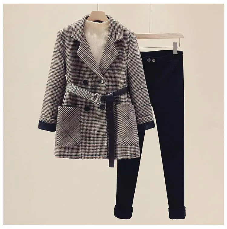 Женский блейзер с поясом, шерстяное пальто с английским воротником,...