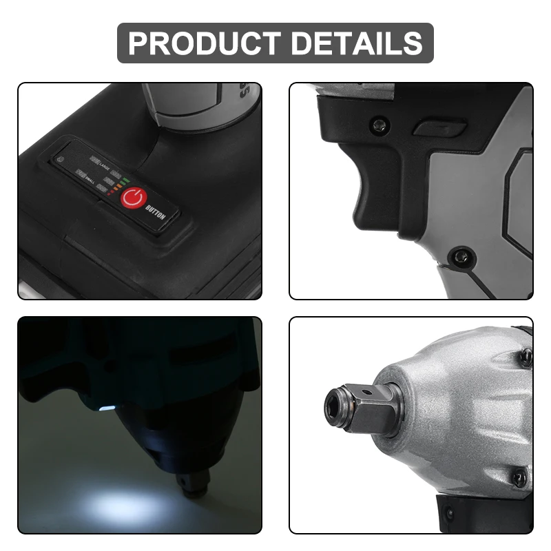 Особенности:-800N.M высокий крутящий момент, плавный Переключатель изменения скорости.-Мощный электрический гаечный ключ, многоцелевой, супер мощный.-Вал из вольфрамовой стали, высокая твердость и износостойкость.-Подходит для строительных площадок, технического обслуживания, деревообработки и т. Д.-Бесщеточный двигатель не генерирует искры, когда он работает, и двигатель не изнашивается.-Светодиодный светильник.Примечание:1. Допускается погрешность в 1-2 см из-за ручного измерения.2. Цвета могут отличаться, так как на дисплее разница, пожалуйста, поймите.3. Мы отправим вам адаптер в соответствии с вашей страной.