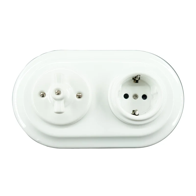 Артикул: 306-309-WH Размер продукта: 17*10,2*6,9 H см Материал: фарфоровый корпус, пластиковый механизм, металлические детали Максимум. Напряжение и ток: 240 в, 10 А для переключателя, 16 А для розетки Подходит для: гаража, кафе, подвалов, магазинов, ателье, офисов в промышленном стиле лофт, отелей, ресторанов и т. д. Срок службы: 100000 раз Способ установки: утопленное крепление (Примечание: для обеспечения безопасности обратитесь за установкой к квалифицированному электрику!) Тип упаковки: коробка + пузырчатый пакет