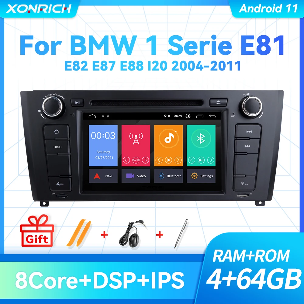Автомобильный мультимедийный проигрыватель, 4 Гб ОЗУ, 64 Гб ПЗУ, 1 Din, Android 11, DVD, для BMW E87 1 серии E88, E82, E81, I20, D 2004-2011, GPS-навигация, DSP