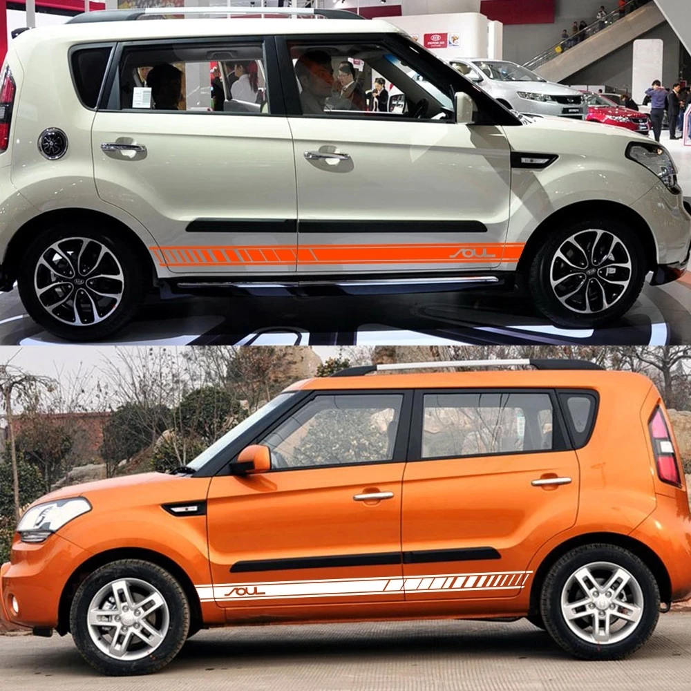 2 шт. стайлинга автомобилей боковой двери юбка в полоску Наклейки Для Киа соул гонки тела декор виниловая пленка наклейки аксессуары для автомобиля