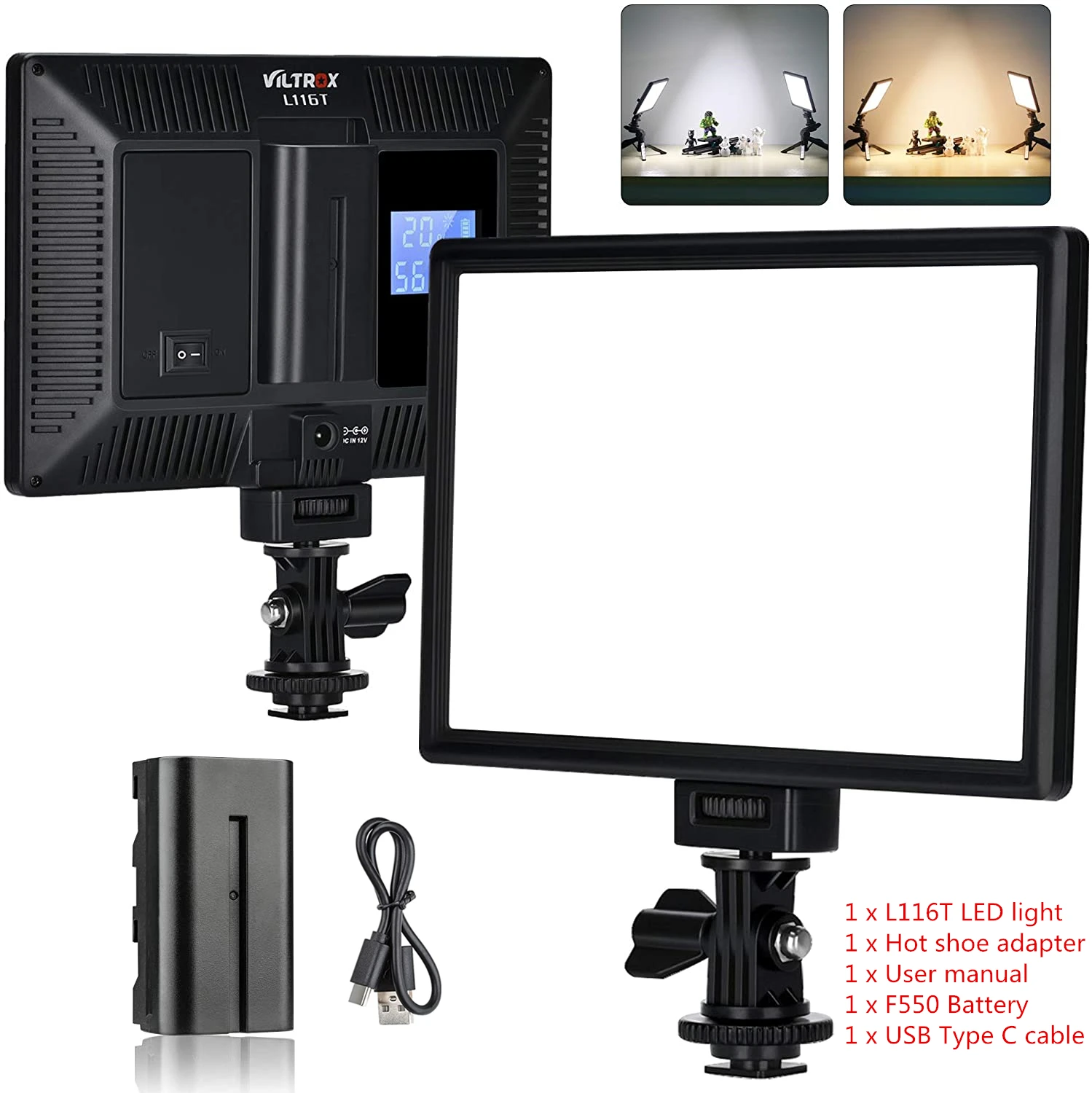 VILTROX L116T светодиодный свет принимает новейший светодиодный сотовый дизайн. Он имеет высокую яркость, природу и мягкое освещение, стабильную цветовую температуру. Подходит для портретов/детей/свадеб и т. Д.