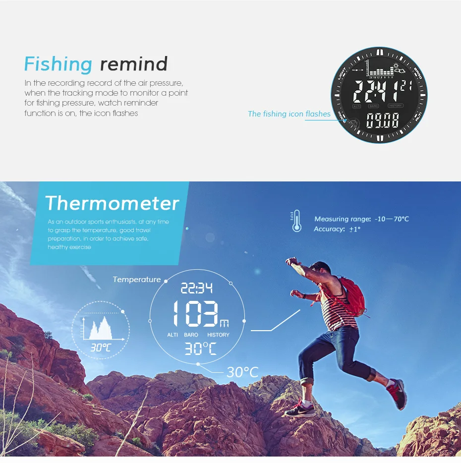 Часы-барометр Мужские, водонепроницаемые, 3 АТМ, с термометром, выс...