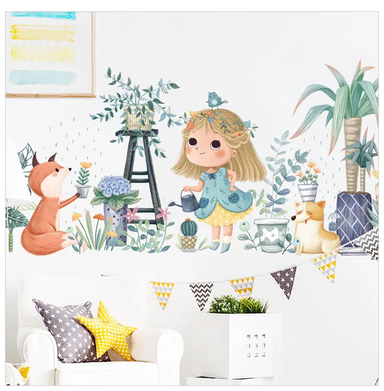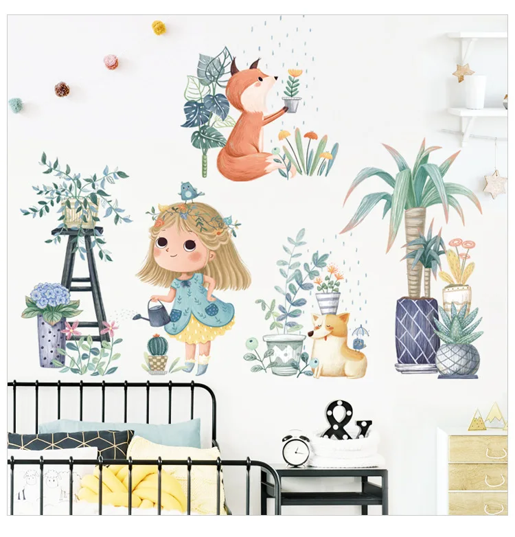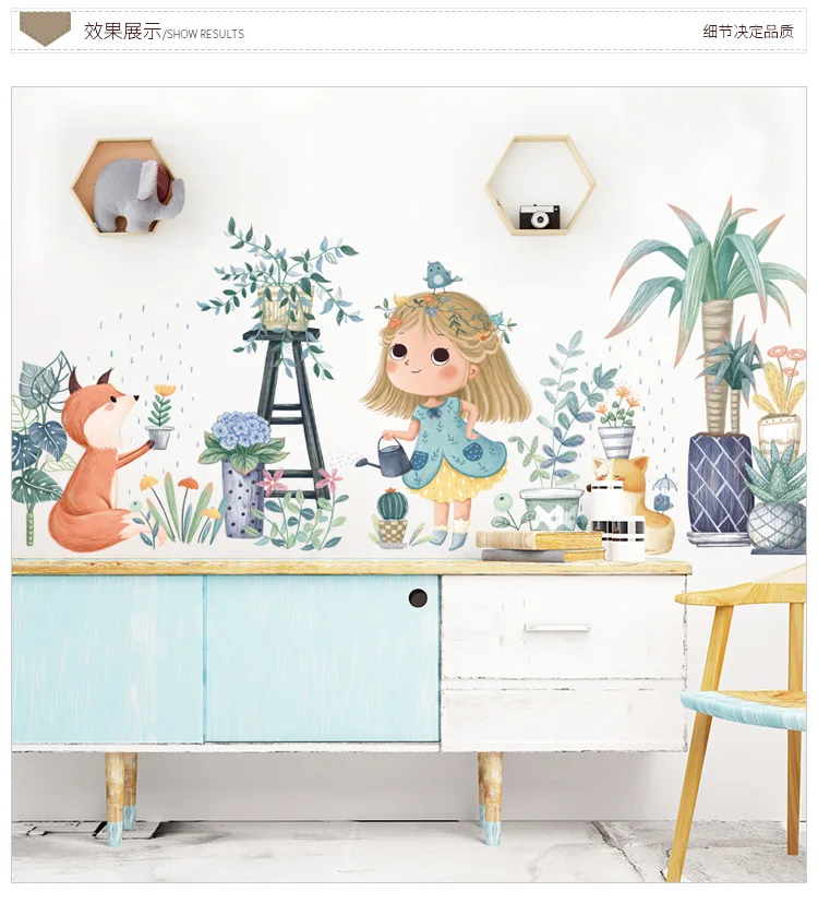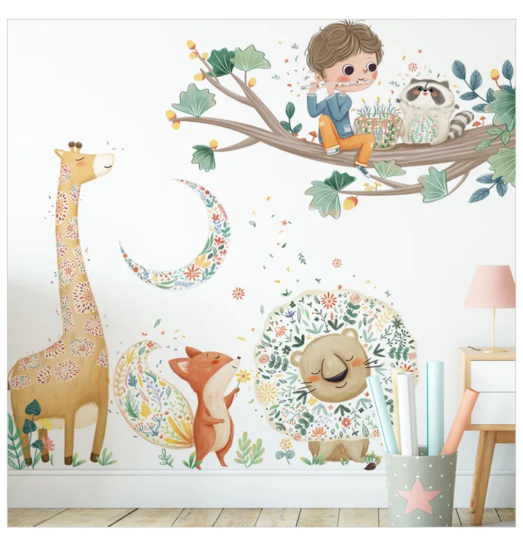 Наклейки с милыми рисунками Жираф Лев лиса обои для детской комнаты детский сад настенные стикеры наклейки для больших деревьев