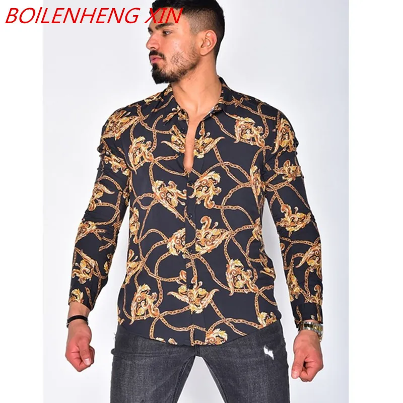 Новые модные мужские королевские рубашки в стиле барокко с цифровой...