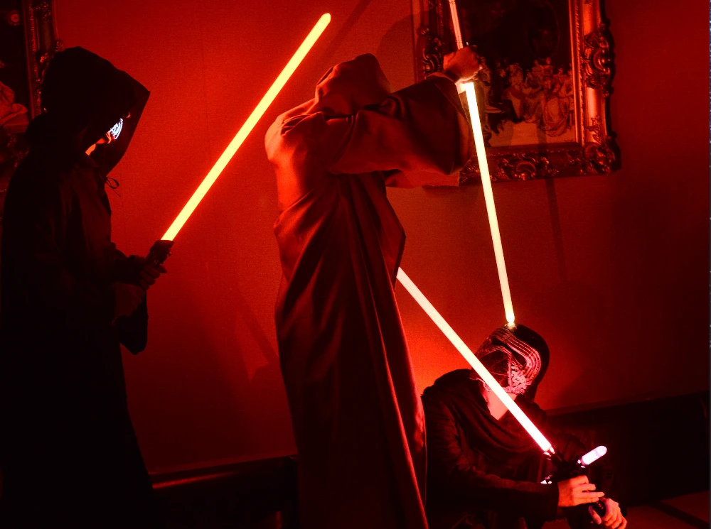 TXQSABER металлический двойной плавный поворотный световой меч FOC с 12 цветами 10 наборов светодиодных звуковых шрифтов, 1 дюймовое лезвие, искусственное дерево