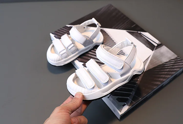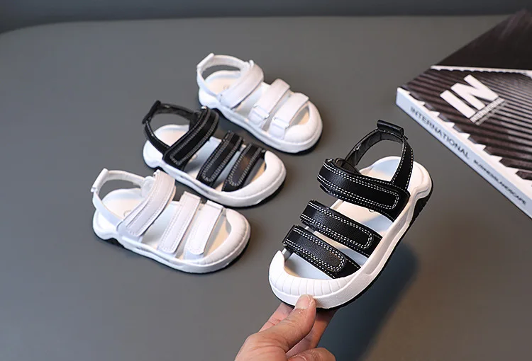 Детские сандалии; Новая Летняя обувь на плоской подошве для мальчиков; Детские Нескользящие пляжные сандалии с мягкой подошвой для девочек; Цвет черный, белый; Tide snoakes E922