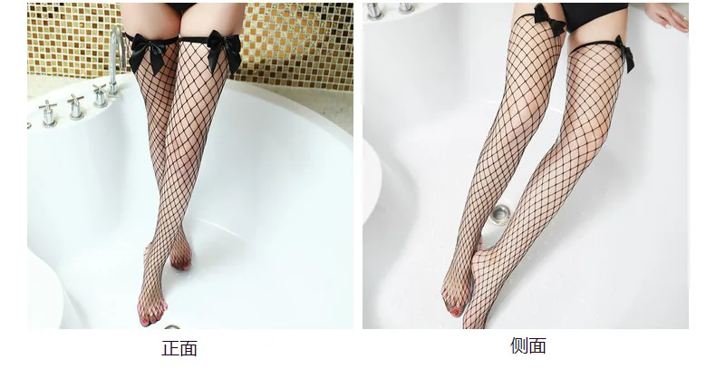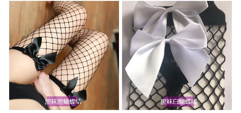 Чулки в сеточку с бантом женские, тонкие чулки выше колена, тонкие черные, весна-лето